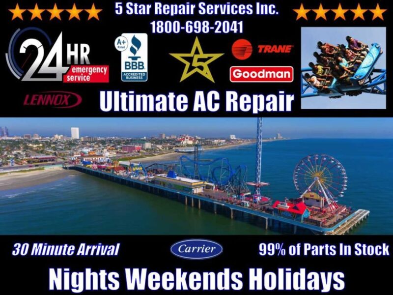 281-380-9979 | 5 Star Repair Services Inc. | Seawall Blvd 77551 | 24 Hour Emergency AC Repair | Air Conditioning | HVAC
